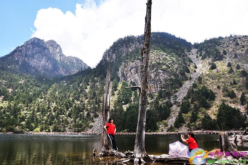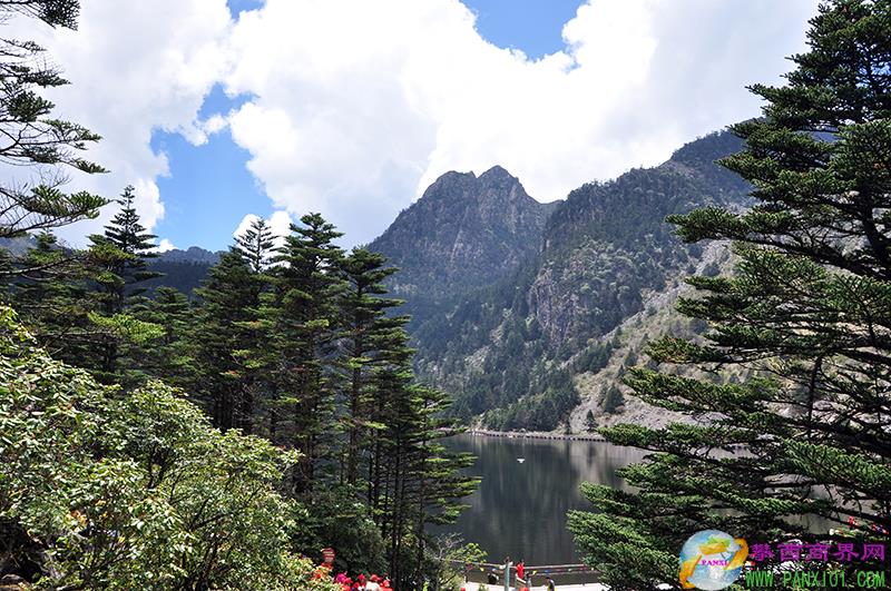一絕五彩冰紛的冰川湖泊。螺髻山現(xiàn)存大小古冰川湖泊33個,它們分布在螺髻山主峰周圍各條山谷的中上游部位。今天我主要向大家介紹景區(qū)內(nèi)最大的一個湖泊和最美的一個湖泊。最大的一個湖泊,現(xiàn)稱“大海子”,原來叫黑龍?zhí)?,意為黑龍棲息的天池。位于海?650米處,豐水期水域面積可達(dá)35公頃。陽光照耀下這里的湖水漆黑如墨,但是走近看,你又能看到岸邊的水清澈見底。湖中還有一些枯木,就是這些枯木的沉淀和水中的腐殖土讓湖水反射呈黑色。這是科學(xué)解說湖水黑色的原因。不過當(dāng)?shù)厝硕颊f,湖水是黑色,是因為這里面居住了兩條黑龍,它們養(yǎng)育了彝族的英雄支格阿魯。傳說在遠(yuǎn)古時期,神鷹從空中滴下三滴鮮血,滴在蒲嫫里伊姑娘身上,姑娘就懷孕了,然后生下了支格阿魯??墒侵Ц癜Ⅳ攺某錾_始就帶著厄運(yùn),他成天以搖動天地為樂,搞得天搖地動。母親無奈,只好忍痛將它托付給了螺髻山的黑龍。螺髻山大海子的兩條黑龍收養(yǎng)了支格阿魯,從此他在龍的養(yǎng)育下成長為一個擁有神力的英雄,這才有了后來的射日傳說。所以,當(dāng)?shù)匕傩瞻褜h(yuǎn)古彝族英雄支格阿魯?shù)某绨葜橐魄橛诖?,認(rèn)為潛藏于黑龍?zhí)兜暮邶垞嵊擞⑿壑Ц癜Ⅳ?,就有了支格阿魯誕生于此的美麗傳說。