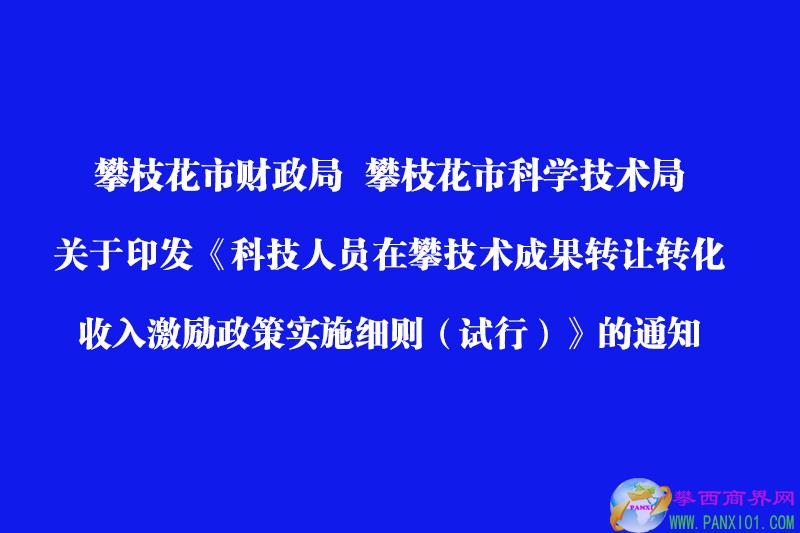 攀枝花市財(cái)政局 攀枝花市科學(xué)技術(shù)局關(guān)于印發(fā)《科技人員在攀技術(shù)成果轉(zhuǎn)讓轉(zhuǎn)化收入激勵(lì)政策實(shí)施細(xì)則(試行)》的通知